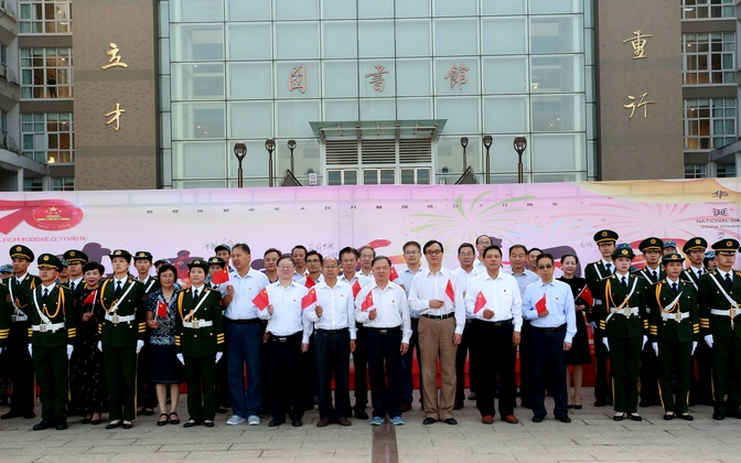 按照千万大学生“青春告白祖国”工作部署视频会会议精神,结合beat365官网实际,2019年9月30日,beat365官网在图书馆广场隆重举行庆祝新中国成立70周年升旗仪式,党委书记刘泽功、党委副书记、院长长丁明、党委委员郑桂富、纪委书记赵大为、党委委员郭有强出席仪式,各部门主要负责人,各教学院部党组织书记、团总支书记,马克思主义学院全体教师,民主党派代表,2019级新生辅导员、学生干部代表、2019级全体新生参加仪式。