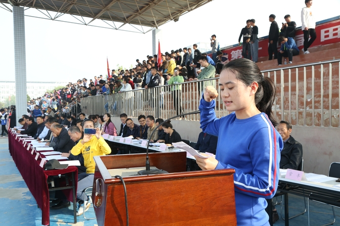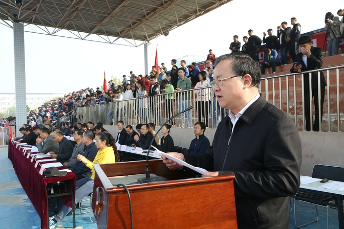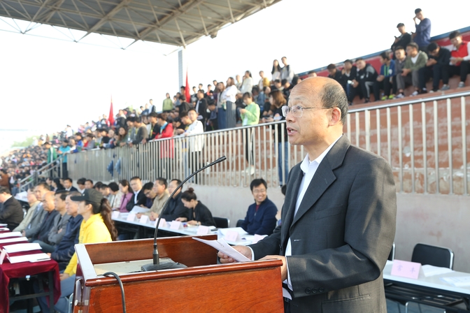 他希望全体运动员发扬顽强拼搏的精神,遵守比赛规则,赛出风格、赛出水平、赛出成绩。希望全体裁判员、教练员和工作人员恪尽职守,优质高效的完成赛会的各项工作。希望全体师生员工以此运动会为契机,积极参加体育锻炼,用健康的身心永葆青春活力。