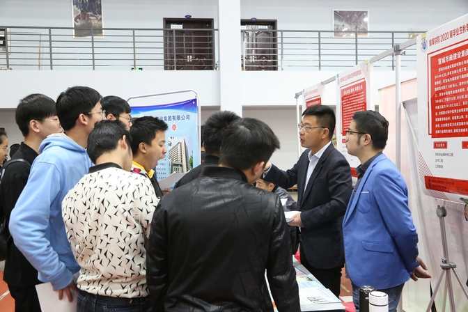 上午9时许,体育馆内,人声鼎沸,2020届毕业生们在自己感兴趣的用人单位展位前仔细阅读宣传海报和图册,积极投递简历并向招聘方主动了解相关信息。各大企业招聘负责人耐心地介绍岗位的招聘要求以及公司的基本概况和发展前景。整个招聘现场呈现出一幅紧张有序的画面。