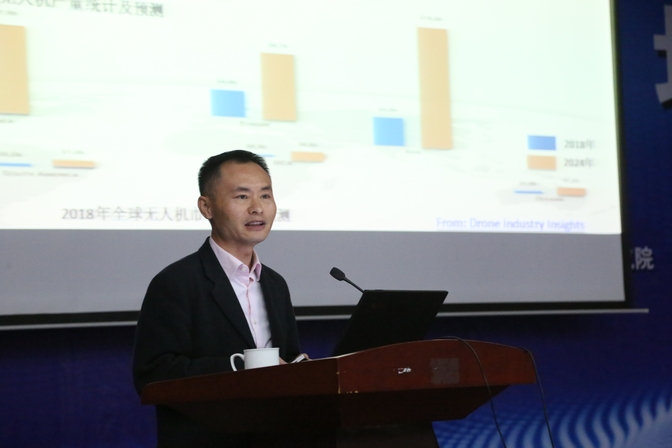 中国科学院无人机应用与管控研究中心执行秘书长谭翔在讲解无人机产业的发展趋势和未来新兴市场时提出,蚌埠市可以加强对无人机综合验证基地、无人机低空公共安全、无人机大数据平台等新兴市场进行跟进研究,相关市场的占有一定可以带来新的经济增长点。
