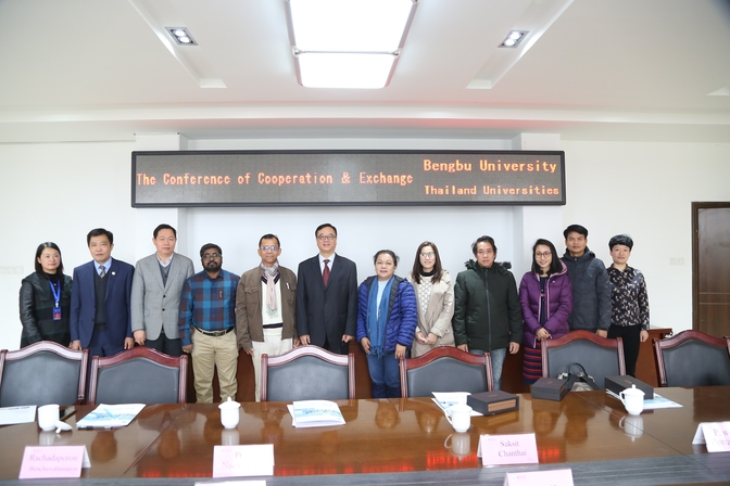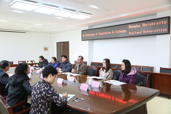 2019年11月21日上午,泰国孔敬大学、纳孔斯·塔玛拉特皇家大学、武里南皇家大学和诗纳卡宁威洛大学四所高校的六位知名教授应邀来校开展交流合作,党委副书记、院长丁明在学校行政楼第一会议室接见了来宾并进行亲切会谈。beat365官网材料与化学工程学院、理学院、外事处负责人参加座谈交流。