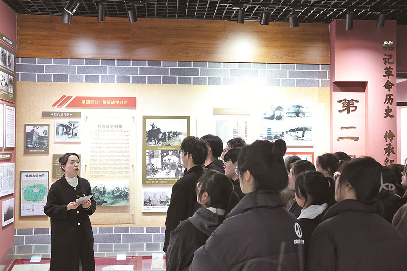 “革命文物看得见、摸得着,学生爱听,也听得进去。”吴天歌说,这样的课堂,学生通过沉浸式、互动式的现场观看,感受蚌埠市革命历史陈列馆的文物资料,了解蚌埠人民在中国革命事业中波澜壮阔的奋斗历程,更能激励青年大学生在传承红色基因中坚定报国信念、在赓续红色血脉中汲取创新力量。