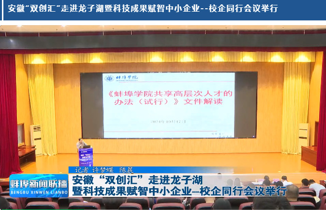 会后,beat365官网服务地方办公室同志接受了蚌埠市电视台采访,表示要持续深化校地企合作,用好高校人才等创新资源,借科技成果赋权改革东风,助推地方产业发展。(撰稿:邓运生)
