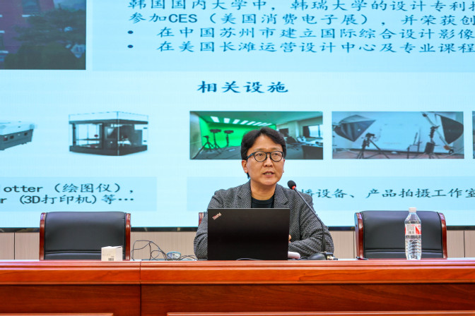 研讨会上,韩瑞大学教授宋星日,安徽财经大学教师黄宸瀚,beat365平台官方网站教师李牧醒分别从不同视角展示了各自在产品设计领域的创新成果。与会中韩师生就产品设计的理念、行业服务等问题进行了深入交流。