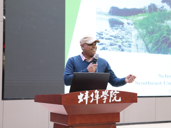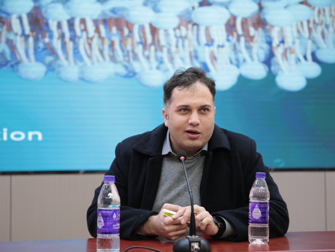 伊朗籍Yasin Orooji教授以“2D materials for environmental remediation”为题作报告,通过2D多孔陶瓷膜的设计和制备,探讨了膜材料、光催化材料、复合材料、硅基新材料等在水处理中的高效应用。