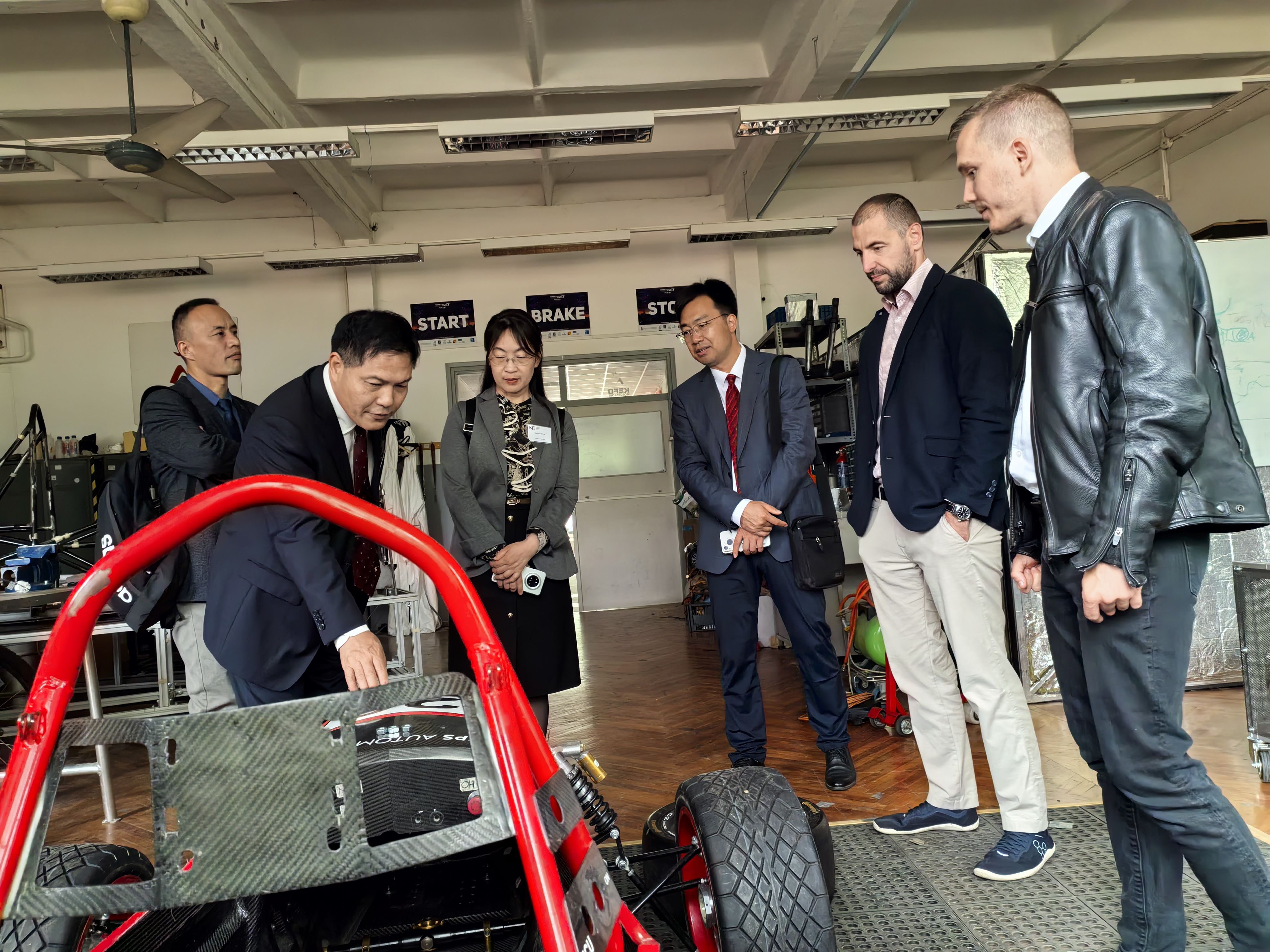 代表团一行实地考察了约翰·冯·诺依曼大学的实践育人基地,重点参观了机械与车辆工程实验室、智能汽车研发中心等科研平台。该校实验室设备先进,与企业合作紧密,项目引领培养创新能力机制扎实有效,为学生提供了丰富的实战平台。