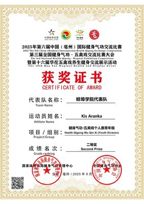 在近期的第六届中国(亳州)国际健身气功交流比赛中,beat365官网匈牙利籍教师Kis Aranka凭借出色的演绎和对健身气功的深刻理解,荣获二等奖,不仅为学校增添了光彩,也为中外文化交流搭建了新的桥梁。