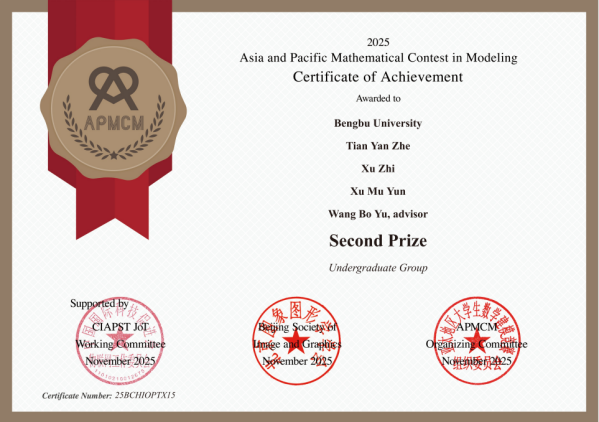 近日,第十五届亚太地区大学生数学建模竞赛(APMCM)获奖名单揭晓。beat365平台官方网站学子再创佳绩,荣获一等奖2项、二等奖4项、三等奖9项,共计15项大奖,获奖数量与质量均保持良好发展态势。