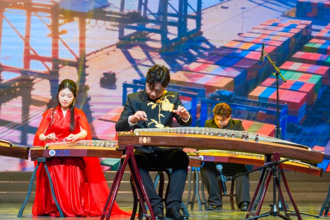 献演的古筝名曲《战台风》,创作于上世纪六十年代,是中国古筝艺术中的经典作品之一。作品通过紧凑有力的节奏与鲜明生动的音响对比,描绘了沿海人民在党的领导下众志成城、抗击台风的壮丽场景,展现出不畏艰险、迎难而上的精神气质,象征着团结一心、勇往直前的英雄气概。本次演出,展现了中华优秀传统音乐的艺术魅力,通过铿锵有力的音乐语言,表达了对新时代青年投身军营、报效祖国的深情礼赞。