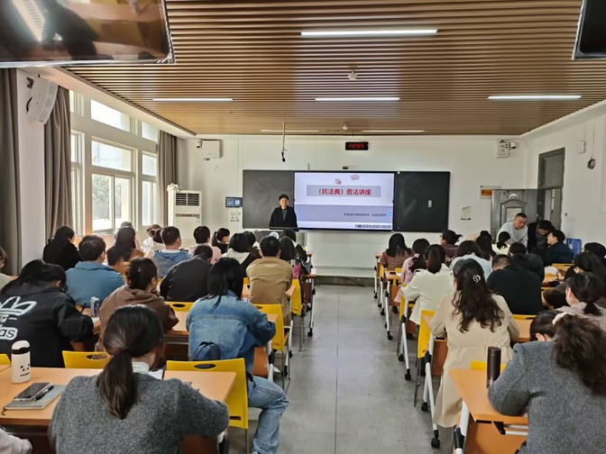 为提升广大教职工的法律素养,开展普法教育,4月2日下午2:40,学校在B109校工会举办了一场《民法典》知识讲座。“安徽省十佳律师”、“安徽省三八红旗手”、安徽淮佑律师事务所张慧燕律师受邀作专题讲座,100余名教职工参加本次活动。