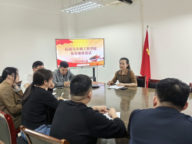 深入贯彻中央八项规定精神学习教育为契机,持续推进作风建设常态化长效化,机械与车辆工程学院于4月22日下午在学院会议室开展集体廉政谈话,会议由学院党委书记杨晓秋主持,学院科级干部、辅导员、实验中心主任等重点岗位人员参加。