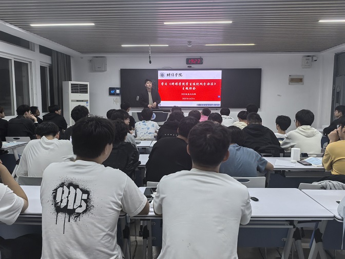 班会上,辅导员带领学生逐条研读《处分办法》核心条款,重点解读课堂考勤、考试规范、网络行为等学生日常管理中的高频问题,旨在使同学们深刻领会违规违纪行为的严重性,从而自觉树立纪律底线意识。会议特别强调“刷单返利诈骗”“网络信息不实传播”等典型案例,直观呈现违规行为对个人信用、学业发展及校园秩序的严重危害。“纪律红线既是‘警戒线’也是‘保护线’,唯有知敬畏、存戒惧、守底线,才能在健康的环境中成长成才。”