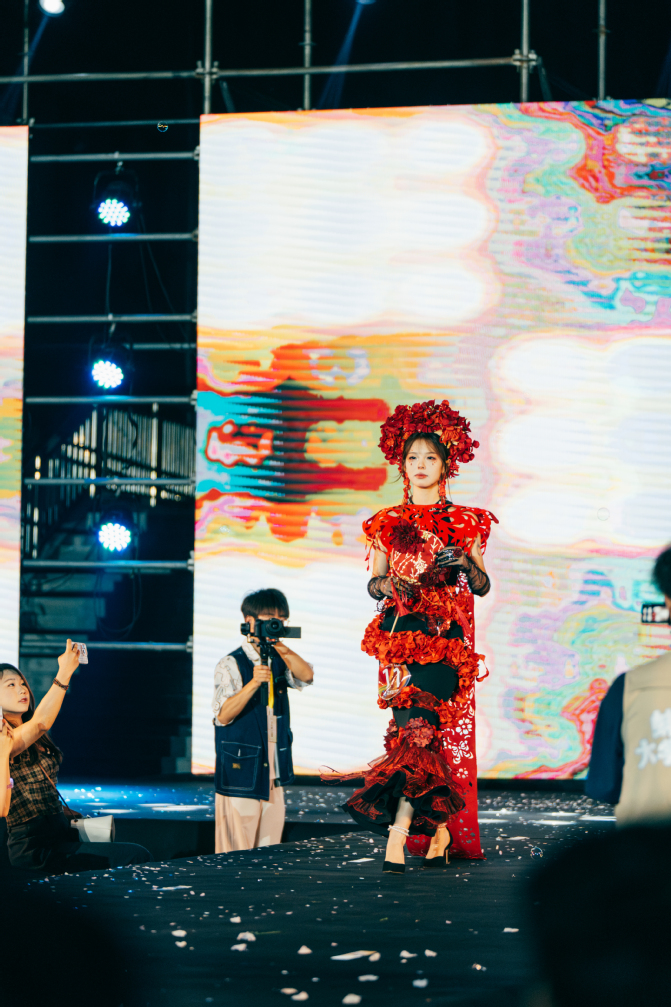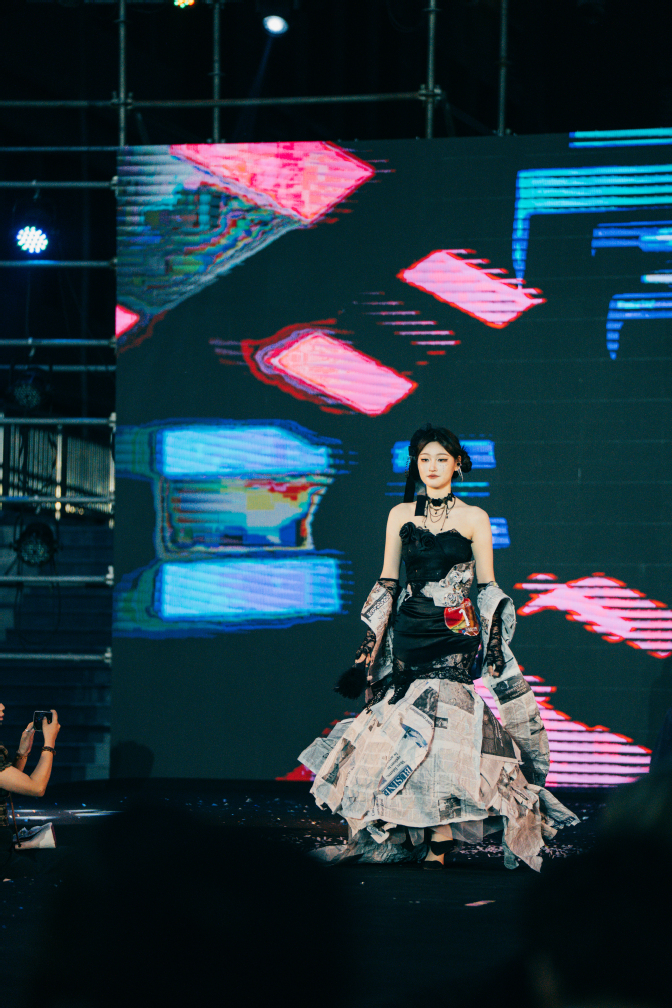 在聚光灯照不到的幕后,一场“五育融合”的育人实践早已悄然展开。设计师团队在80余天的创作周期里,既要精通《立体裁剪》专业技能(智育),又需深入校园收集再生材料(劳育);模特团队每日训练中增强体能(体育),在形体训练中领悟东方美学(美育);学生会干部统筹全局时培养责任担当(德育)。这种“项目制+导师制”的培养模式,使学生在解决“如何让塑料瓶呈现丝绸质感”等实际问题的过程中,同步完成知识建构、品格淬炼与价值塑造。
