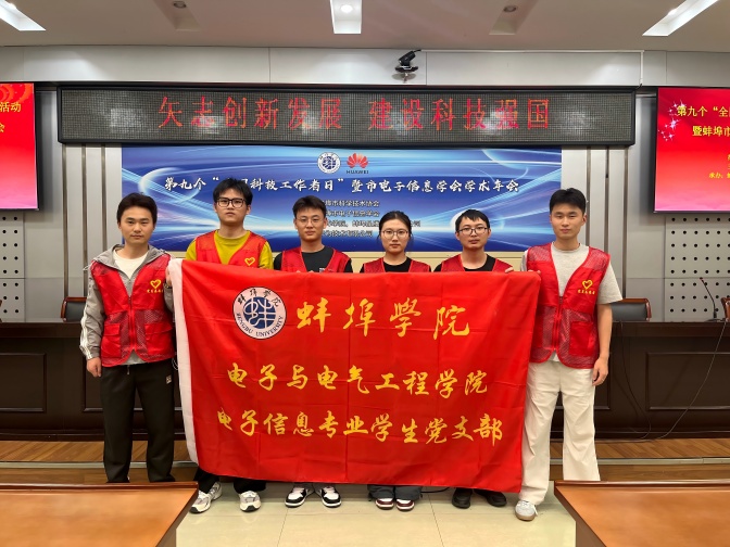 2025年5月25日,蚌埠市第九个“全国科技工作者日” 活动暨学术年会在beat365平台官方网站举行,电子与电气工程学院电子信息专业学生党支部学生党员代表前往参观学习并开展志愿服务。