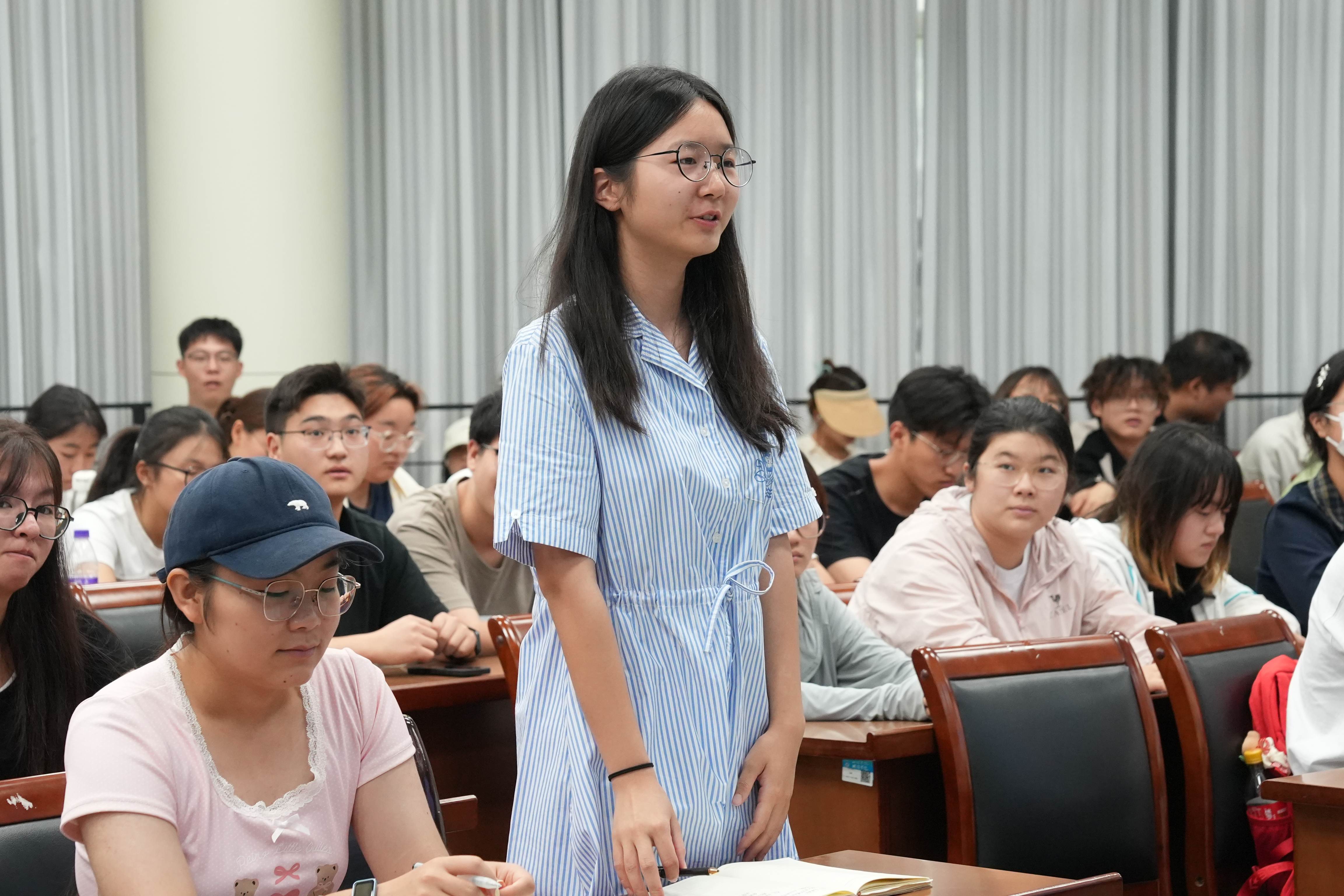 在提问环节,同学们踊跃提问。李博与大家共同探讨了AI助理在新闻产业中的应用前景,并为同学们就解答了在校园里如何创作自媒体等问题。