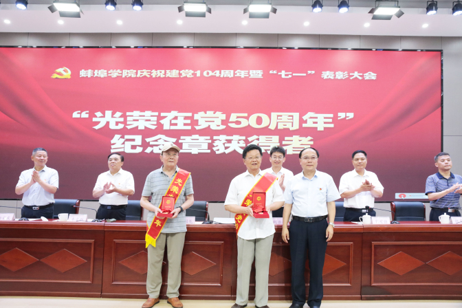 大会对“光荣在党50年”老党员、优秀共产党员、优秀党务工作者、先进基层党组织进行表彰。在热烈的气氛中,校领导为“光荣在党50年”老党员颁发纪念章,为获奖的优秀共产党员代表、优秀党务工作者代表、先进基层党支部代表、先进基层党委代表颁奖。