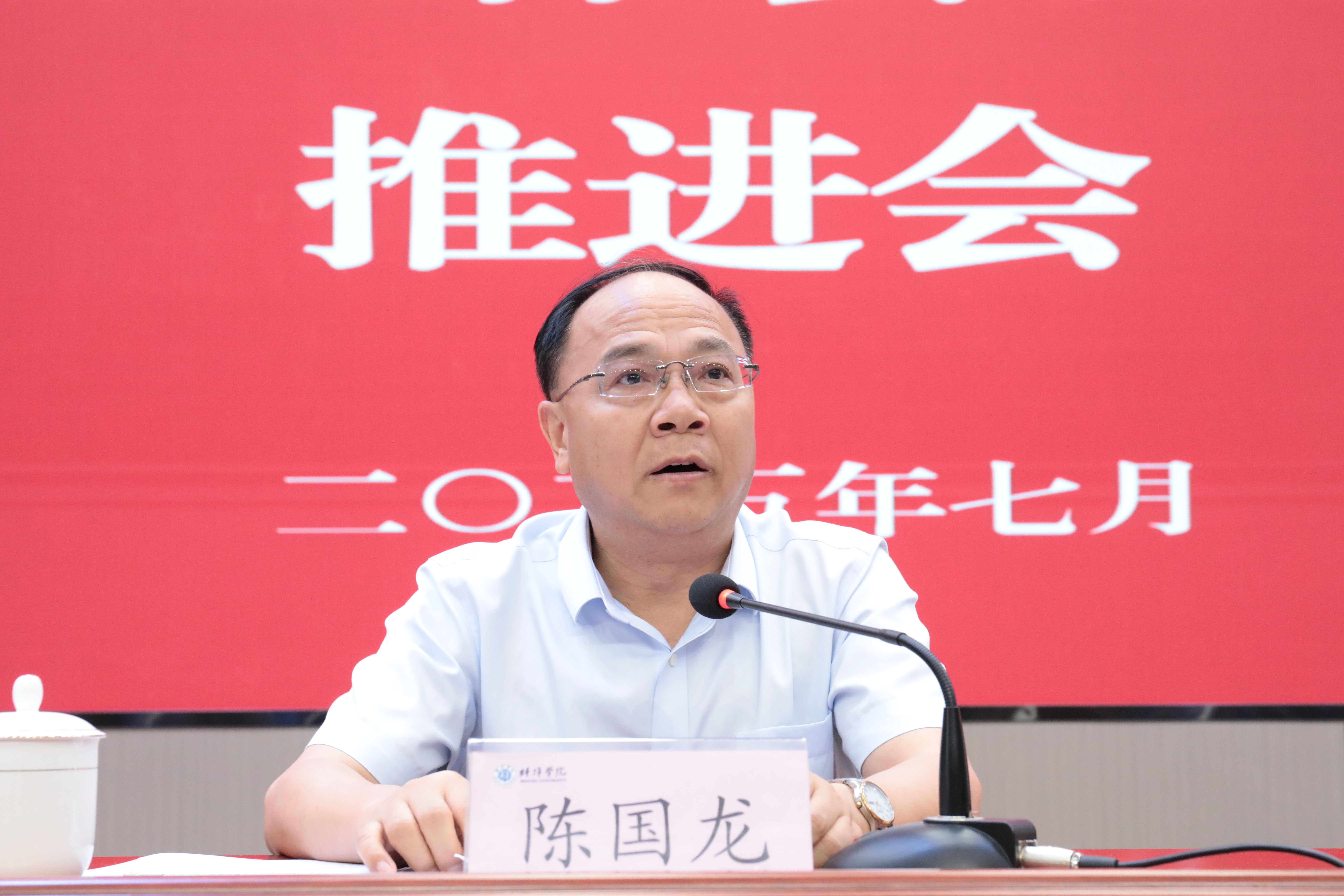 7月8日,学校召开2025年暑期工作会议暨审核评估工作推进会,对暑期重点工作进行总体部署,对新一轮本科教育教学审核评估工作进行再部署、再推进。会议强调,2025年是学校建设发展历程中极为重要的一年,年度四项重点工作全部进入倒计时,全校上下要团结一心、全力以赴,以“时时放心不下”的责任感、“事事紧抓不放”的执行力、“处处奋勇争先”的进取心,全力以赴推进各项工作。校领导班子成员,全体处级干部、党支部书记、教研室主任、实验(实训)中心主任、专业负责人参加会议,党委书记陈国龙主持会议。