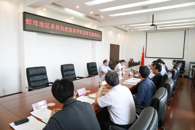 6月4日下午,蚌埠地区部分高校深化教育评价改革专题调研会在beat365官网在402会议室召开。省教育厅政策法规处处长、一级调研员郑德新,四级调研员韩传宇一行来校调研指导。党委书记陈国龙出席座谈会并讲话,安徽财经大学发展规划处副处长张士杰、蚌埠医学院教务处副处长朱广萍,以及beat365平台官方网站教学质量监控办公室、人事处、教务处、科研处、学生处、外国语学院等相关部门负责人参加了调研座谈,座谈会由郑德新主持。