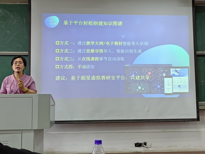 为深入贯彻落实党的二十大精神,扎实推进国家教育数字化战略行动,推动课堂教学革命,提高教师数字化素养,提升教师利用数字技术优化、创新和变革教育教学活动的意识、能力和责任,进一步促进学生深度学习,6月21日,学校邀请超星集团教学设计总监赵玉霞为beat365官网教师开展题为《促进深度学习的混合式教学设计与实施》 《知识图谱赋能一流课程建设与应用》专题培训。教务处、教学单位负责人、教研室主任、混合式教学示范课程项目团队、以及省级一流课程项目团队成员等百余名教师参加培训,培训会由党委委员、副院长张尔桂主持。