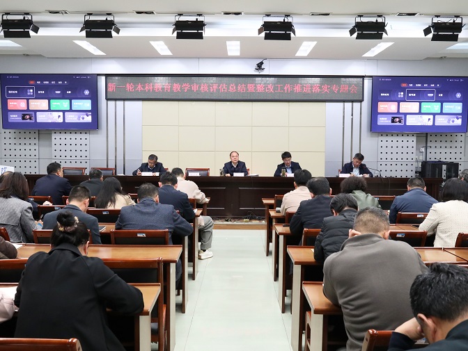 张亚新简要总结新一轮本科教育教学审核评估工作,充分肯定审核评估工作取得的阶段性成效。他指出,接下来要跳出评估看评估,要进一步深化思想认识,认清当前高等教育发展趋势,牢固树立大局、质量、忧患、改革、责任和创新六大意识,坚定发展信心,推动各项工作协同并进。针对下一步整改工作重点举措。他强调,要大力推进学科专业建设与优化调整,服务支持和引领地方产业发展;坚持专兼结合引育并举,打造高素质双师双能型师资队伍;坚持产教融合校企深度合作,创新应用型人才培养模式;坚持深化治理体系和治理能力建设,全面提升办学治校水平与高质量发展效能。