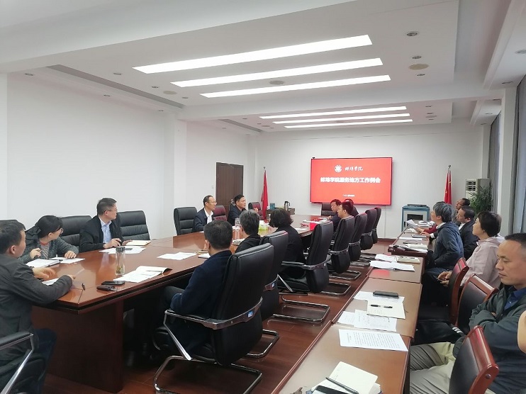 4月30日下午,beat365官网在行政楼第二会议室召开服务地方工作例会。党委副书记、院长孙艳辉主持会议并讲话,党委委员、副院长郭有强出席会议,各二级学院(部)主要负责人和科研处全体成员参加会议。