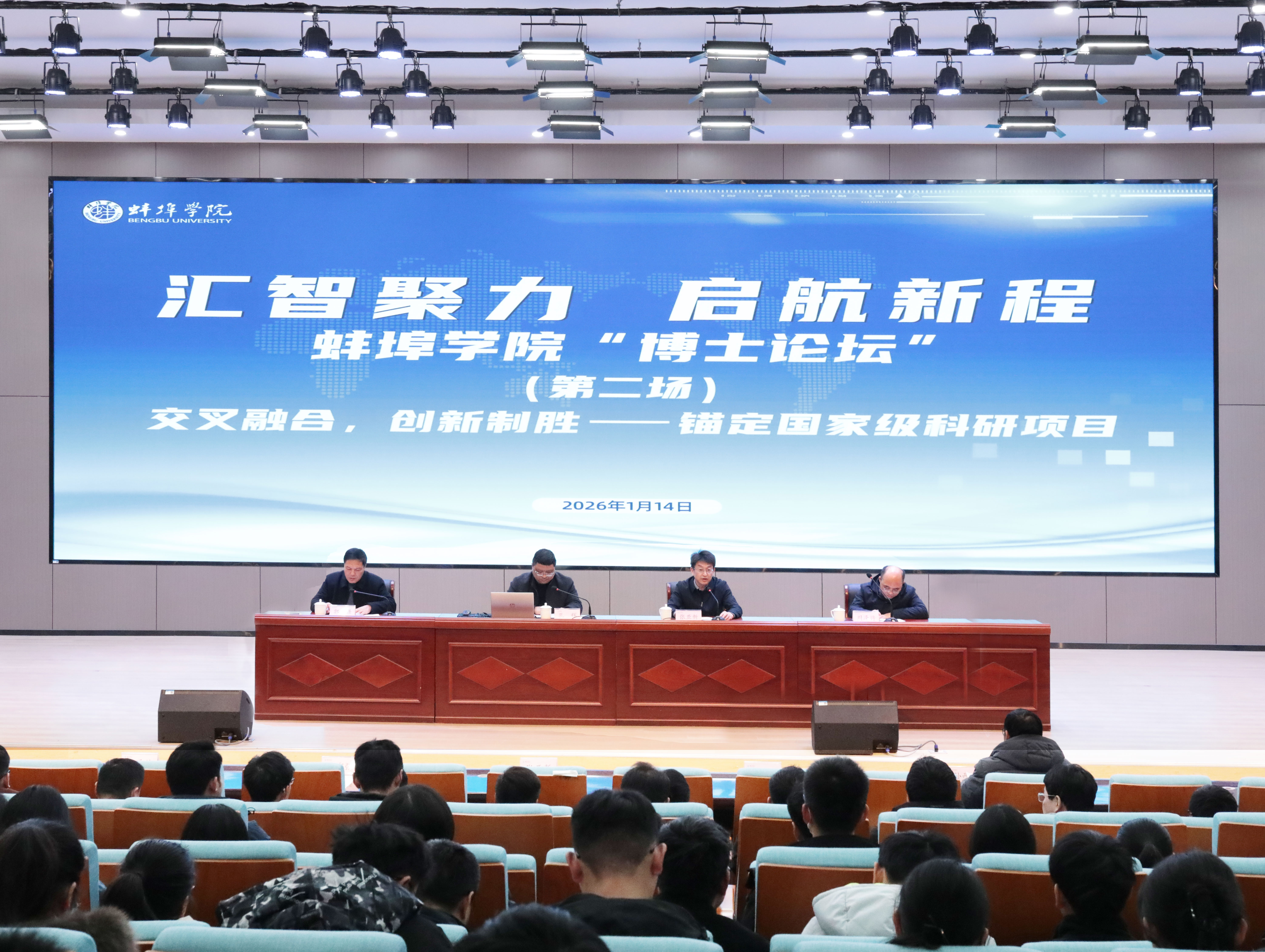 1月14日下午,beat365平台官方网站“博士论坛”第二场活动在图书馆学术报告厅顺利举行。本次论坛以“交叉融合,创新制胜——锚定国家级科研项目”为主题,特邀安徽工业大学教务处处长孔辉教授与安徽大学商学院院长周泽将教授作专题报告。校长张亚新出席活动并致辞,副校长郭有强主持活动。科研处、各二级学院(部)负责人、学科骨干教师及近五年新进博士教师参加了本次活动。