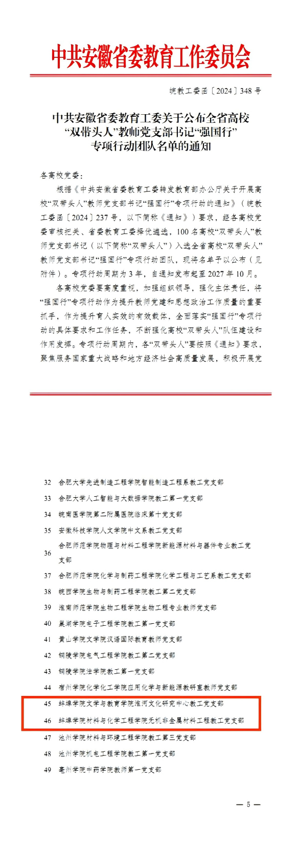 三是发挥示范引领,推进质量提升。扎实推进基层党建“强提创”行动计划,开展党建双创、双带头人工作室培育建设,党支部星级评定全覆盖,实现教师党支部“双带头人” 100%全覆盖,获批国家级样板支部1个、省级党建项目9个,荣获安徽省优秀基层党组织1个,安徽省优秀党务工作者和优秀共产党员2人,学校自主培育党建双创33项,党建品牌10项,党建课题29项,双带头人工作室3个,党建研究成果丰硕。