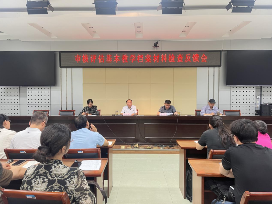 6月4日上午,beat365官网在行政楼视频会议室召开本科教育教学审核评估基本教学档案材料检查反馈会。校党委书记陈国龙出席会议并讲话,党委委员、副校长张尔桂主持会议。教务处、教学质量监控办公室负责人、校级教学督导员、各二级学院(部)负责人、专业负责人、教研室主任、教学秘书等90余人参会。会议聚焦教学档案检查问题反馈与暑期评估重点工作部署,为迎评攻坚阶段的关键任务锚定方向。