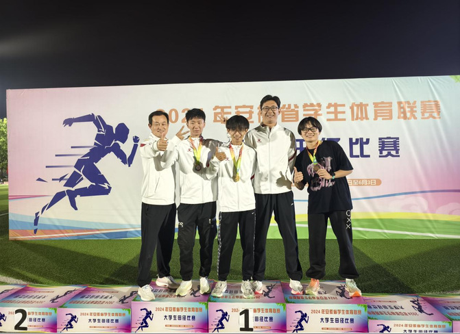 2025年校田径队参加安徽省学生体育联赛大学生田径比赛获得女子甲组铅球冠军;女子铁饼获冠军;甲组三级跳远获第三名;男子甲组1500米获亚军;男子甲组800米获亚军。