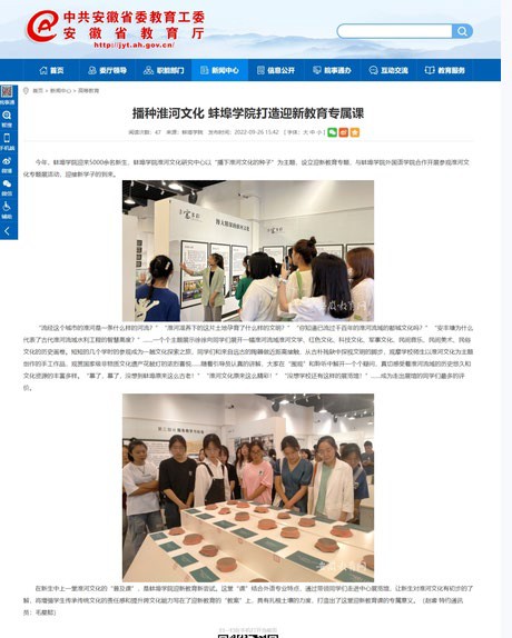 暑期社会实践结合人才培养方案,形成“走进求学城市”“走进红色蚌埠”特色实践方向,如“走进求学城市”开展涂山旅游景点翻译考察,形成调研报告。学院组织承办跨文化能力大赛等赛事,以赛代训提升学生跨文化能力,三年获全国大学生英语竞赛安徽赛区一等奖 24 项等多项奖项。