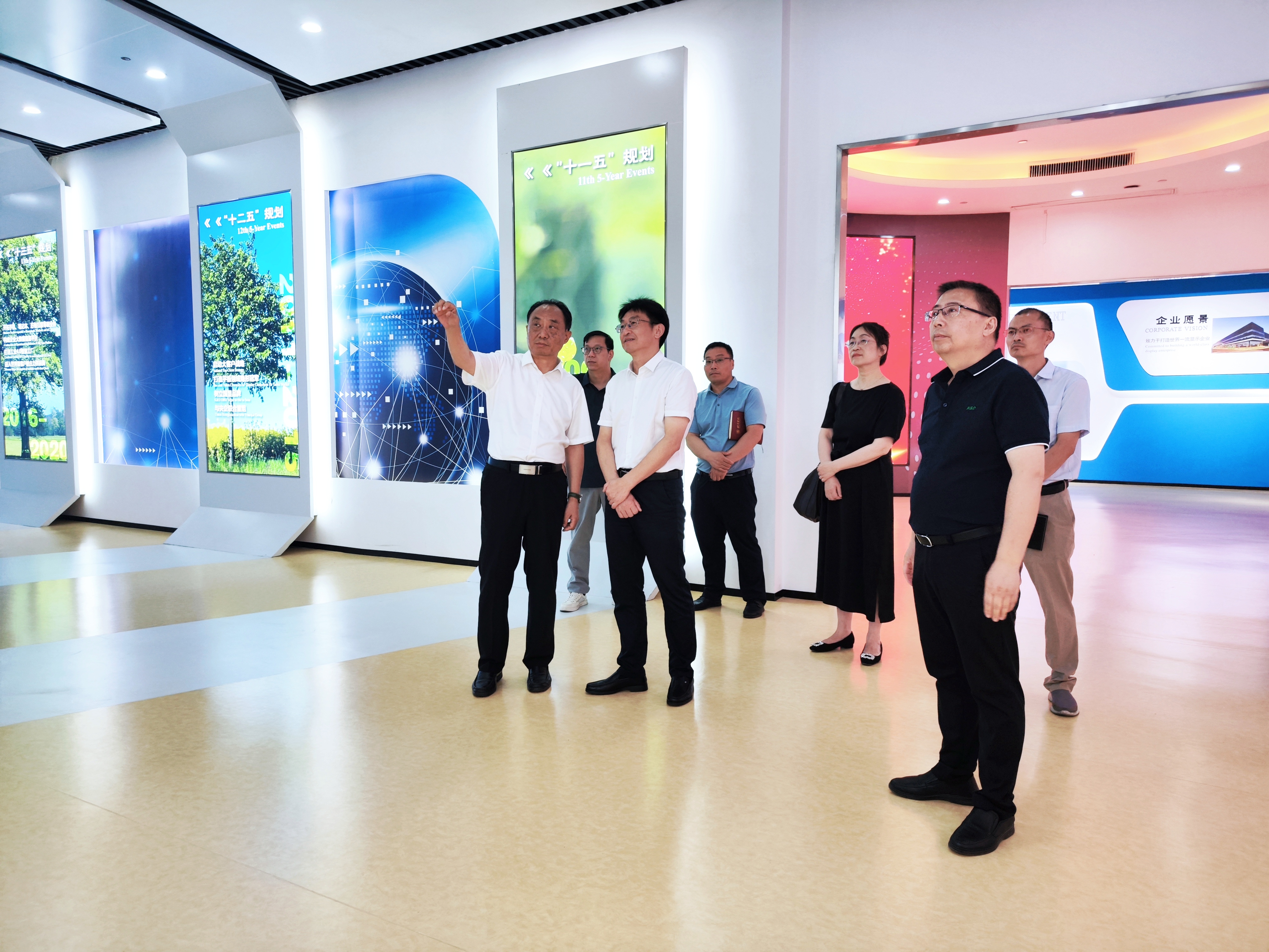 张亚新一行首先参观了凯盛科技旗下蚌埠国显科技有限公司的现代化展厅,深入了解企业的发展历程、企业文化、产业布局以及在光电材料、新型显示等领域的技术创新成果,特别是超薄柔性玻璃等前沿产品的研发进展与创新应用成果。
