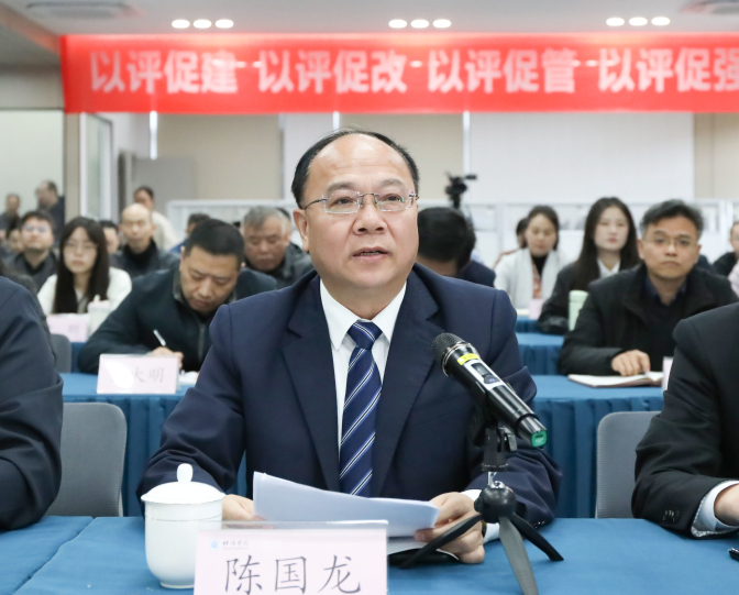 陈国龙在致辞中表示,学校高度重视本轮本科教育教学审核评估工作,自评工作启动以来,认真贯彻落实“以评促建、以评促改、以评促管、以评促强”十六字方针,扎实开展自评自建。近年来,学校与区域的双向互动性日益增强,产教融合度日益加深,工科特色日益鲜明,党建引领日益凸显。学校将以此次评估为契机,不断深化内涵建设与推动高质量发展,奋力开创特色鲜明的地方应用型高水平大学建设新局面。
