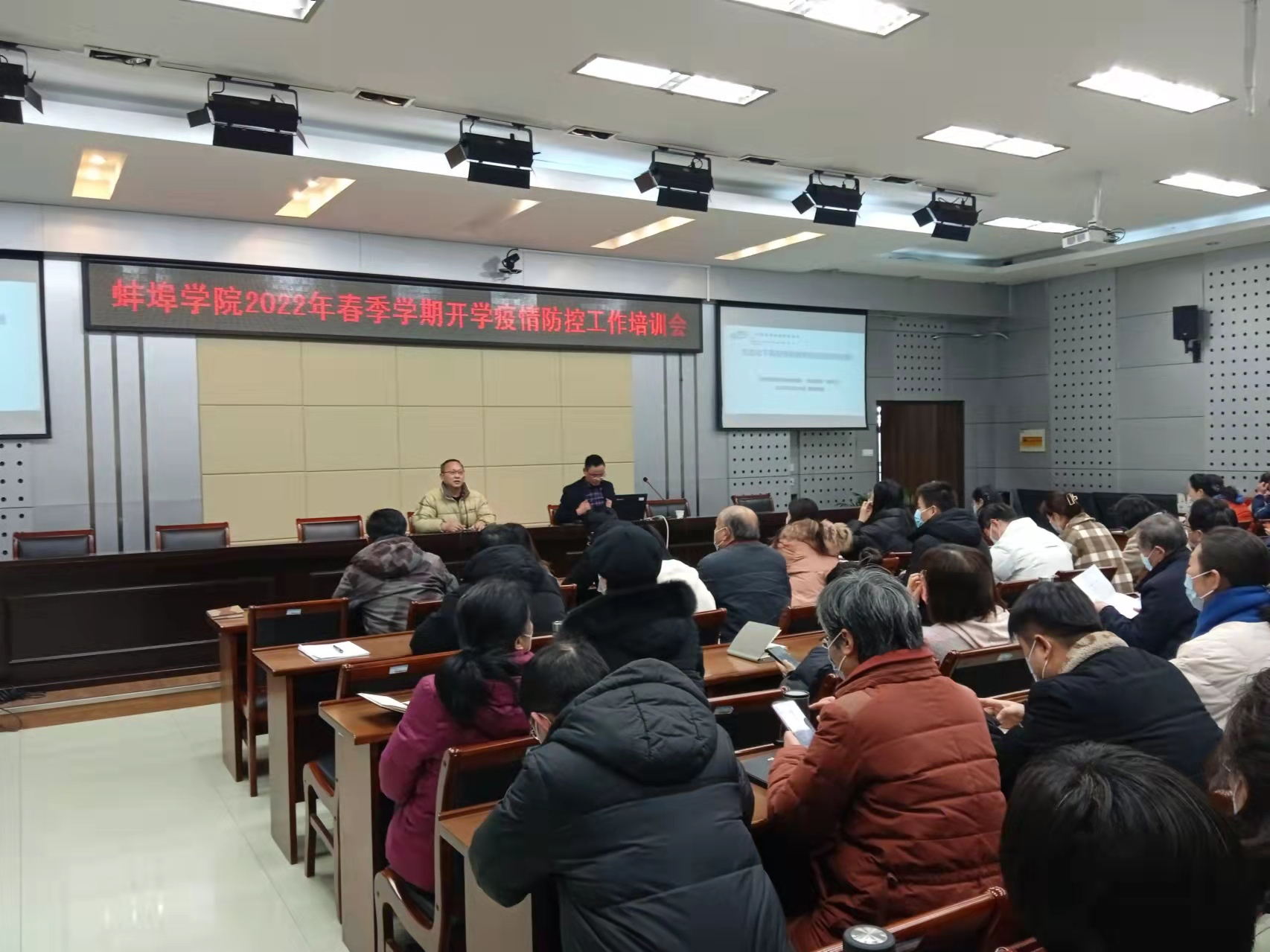 为进一步做好春季开学疫情防控工作,提高教职员工新冠肺炎疫情防控能力,提升各单位常态化疫情防控的规范性、科学性,2022年2月24日下午beat365平台官方网站邀请蚌埠市疫情防控专家组成员、市疾控中心应急办主任、主任医师程孝连在行政楼2楼视频会议室举办2022春季开学疫情防控专题培训。各单位、各部门疫情防控负责人、疫情防控工作联络员、全体辅导员参加培训。