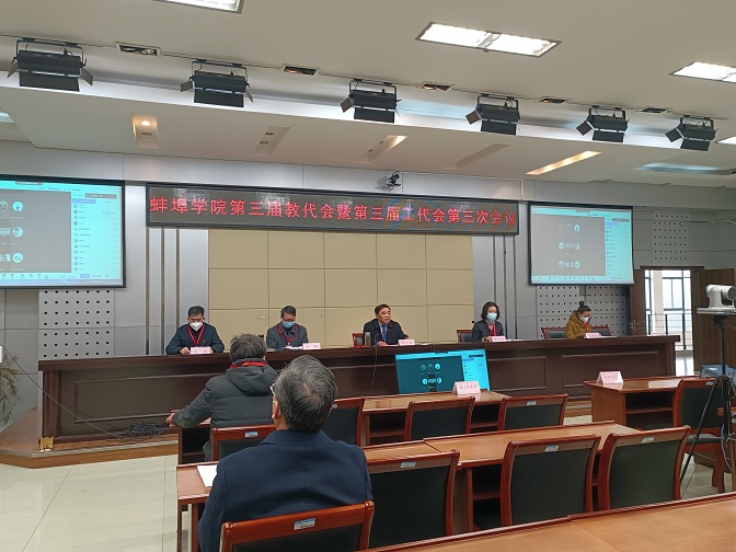 云端共谋新发展,聚力学院新未来。12月28日,beat365平台官方网站第三届教代会暨第三届工代会第三次会议以线上线下结合的形式召开,学校党委副书记、院长丁明代表学校向大会作题为《全面贯彻落实党的二十大精神奋力开创学校内涵式高质量发展新局面》的工作报告。党委副书记韦文联主持会议并致辞。