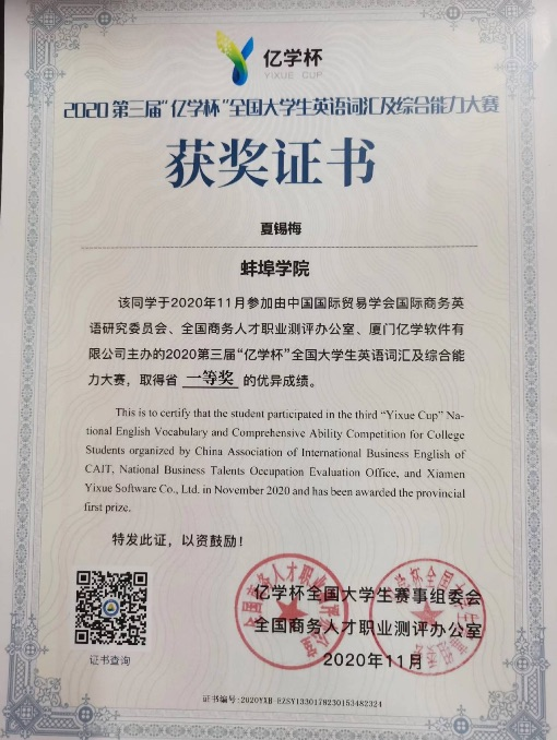 夏锡梅,17翻译专业学生,目前被安徽大学录取。