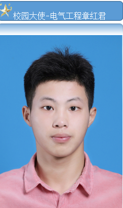 章红君,2018级电气工程及其自动化一班学生,曾任校园大使,社团会长,就业服务小组组长和勤工助学工作组长。优秀毕业生,入学以来多次参加各项比赛并获得奖项。带领团队荣获安徽省第七届工业设计大赛一等奖最佳工艺奖、第九届“挑战杯”安徽省大学生创业计划竞赛铜奖、第九届“挑战杯”安徽省大学生课外学术科技作品竞赛三等奖、安徽省首届大学生红色文化学习与创意设计成果邀请赛三等奖、发表论文一篇,实用新型专利一项,其中“《讲安徽故事,传红色文化》——安徽红色故事集”项目为2020年大学生创新创业大赛国家级立项项目。