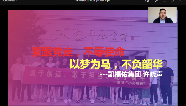 为深入推进“大思政课”建设,深化思政课改革创新,拓展思政课教育教学途径,11月14日晚上,经济与管理学院优秀校友凯福佑集团创始人许晓声应邀为学生上了一堂生动的思想政治课。200余名经管学子参与本次活动,活动由学院党委副书记夏晓燕主持。