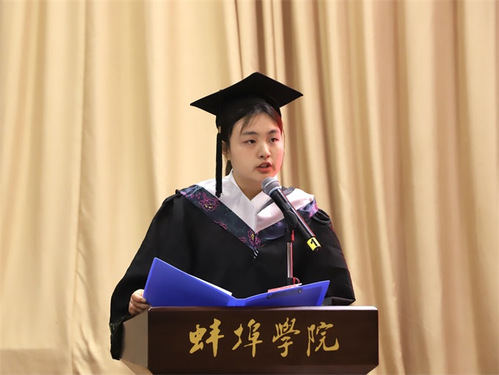 在仪式中,2019级食品科学与工程专业李妺代表毕业生表达了对母校的感恩之情,回顾了四年来学校的教导和自我奋斗历程,表达了迎接人生新的挑战,回报社会、回报母校的信心和决心。