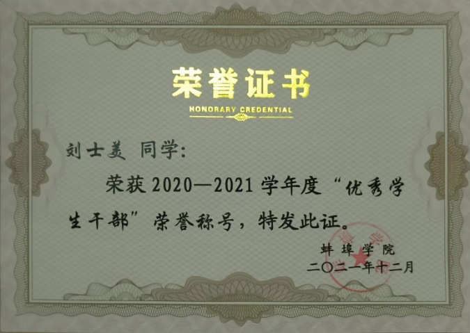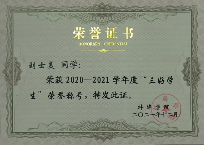 | 刘士美,2020级安材料科学与工程专业同学,多次获得校级奖学金等各种奖项,多次参加互联网+、挑战杯并获奖,目前已考取桂林电子科技大学。