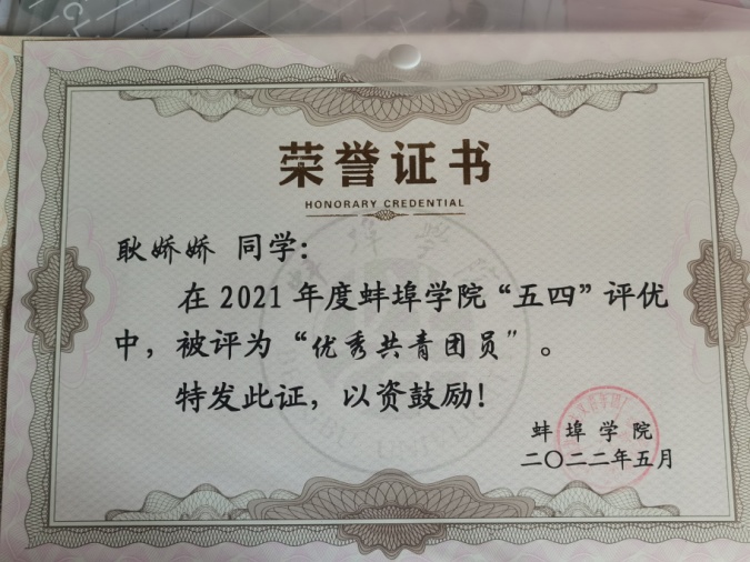 | 耿娇娇,2020级无机非金属材料工程,多次获得校一等奖学金,多次参加挑战杯、互联网+并获省级奖项,目前已被安徽王牌智库人力资源管理中心录取