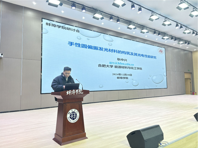 高洪成和耿中兴结合自己的研究方向和研究成果,分别做了题为《溶解氧增强银-钛酸钡材料压电-光催化性能研究》和《手性圆偏振发光材料的构筑及其光电性能研究》的学术报告,并汇报了近期科研情况和取得的科研成果。