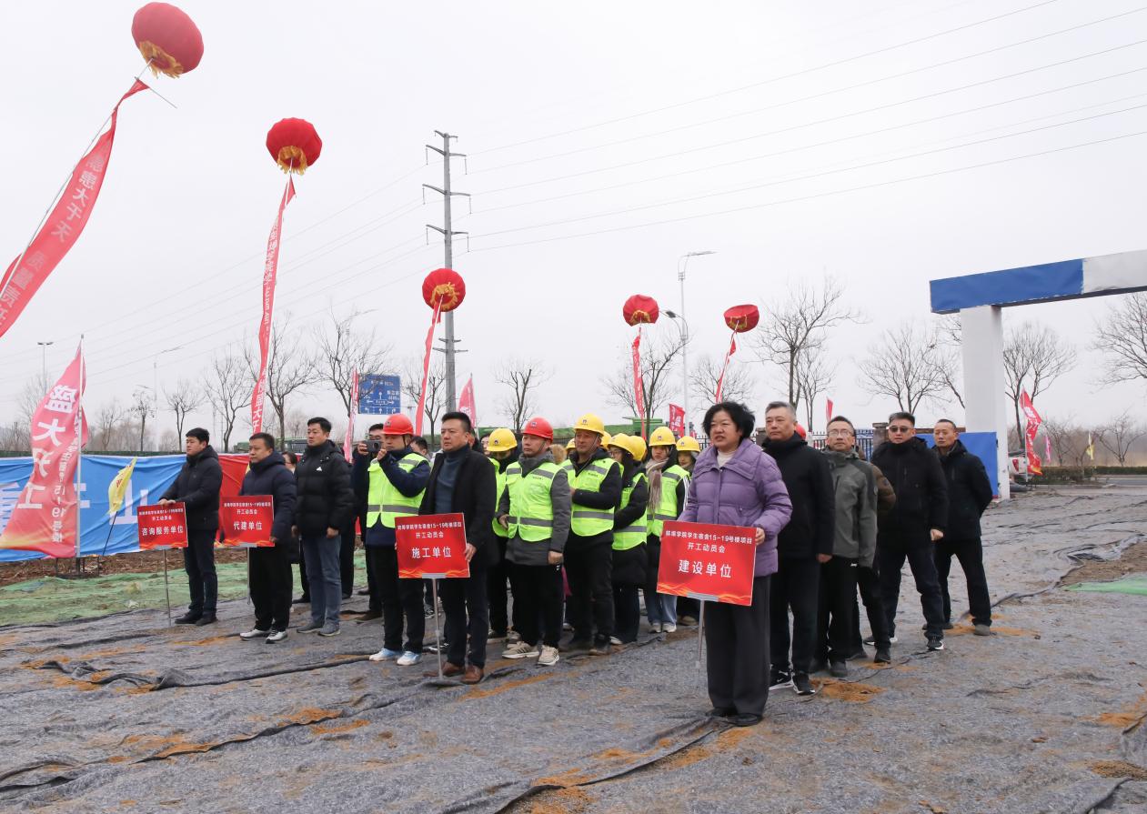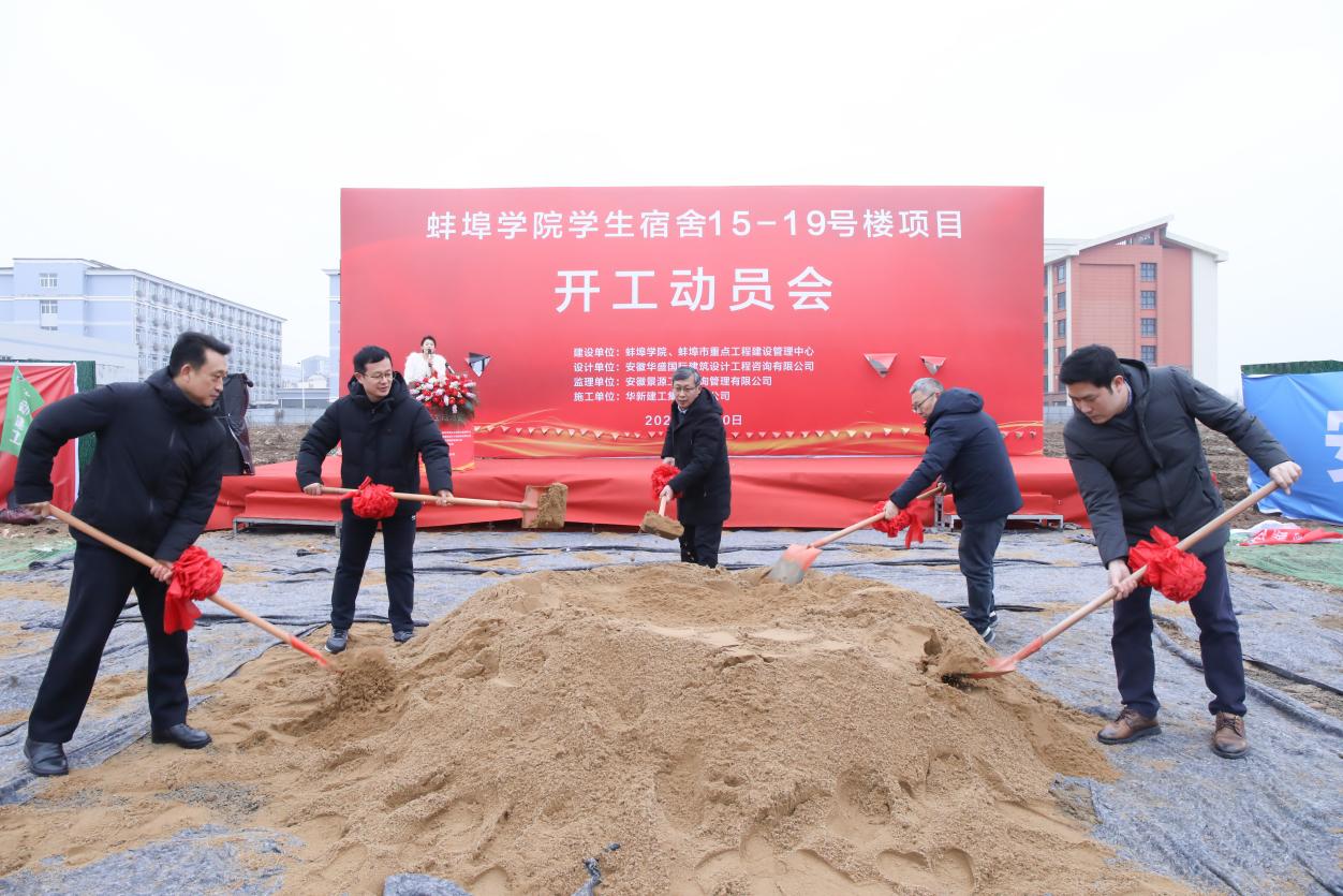 2026年1月30日上午,beat365平台官方网站学生宿舍15-19号楼项目开工动员会顺利举行,beat365平台官方网站党委委员、副校长马伟,代建单位蚌埠市重点工程建设管理中心副主任周钢,蚌埠城建投资发展有限公司总经理梁万磊,施工单位华新建工集团有限公司集团副总裁吕厚俊等出席,学校相关职能部门负责人、参建单位代表参加。
