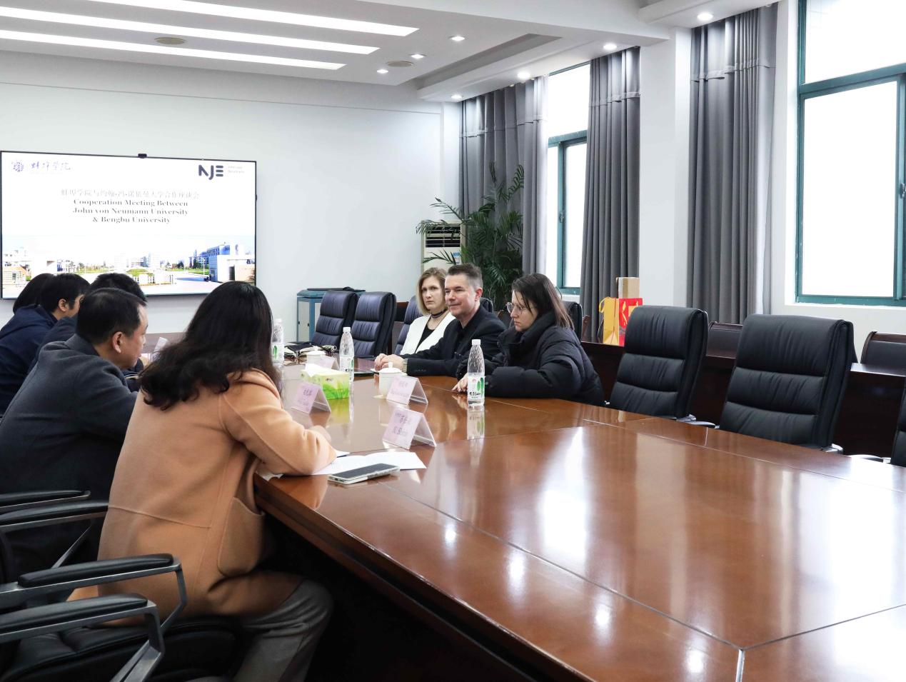 3月16日下午,蚌埠学院与匈牙利约翰·冯·诺依曼大学开展合作座谈会在行政楼第二会议室举行,beat365平台官方网站党委副书记方贤文,匈牙利约翰·冯·诺依曼大学经济学院院长卡帕缇·约瑟夫博士出席座谈会,beat365平台官方网站外国语学院、外事处等相关单位负责人,学校部分外籍教师参与会谈。