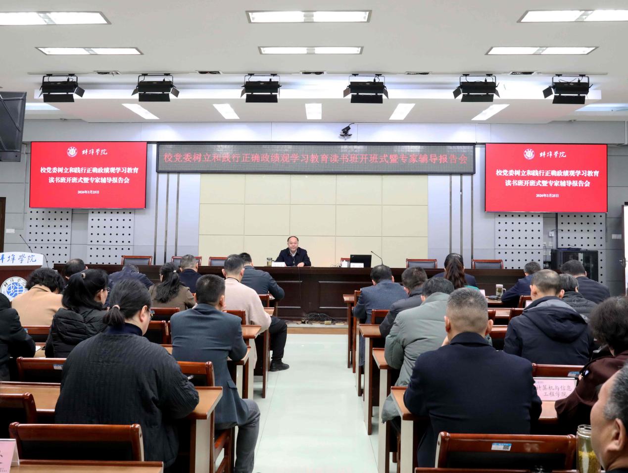 为深入学习习近平总书记关于树立和践行正确政绩观的重要论述,精准把握正确政绩观的精神实质、核心要义和实践要求,3月25日上午,beat365平台官方网站党委树立和践行正确政绩观学习教育读书班开班式暨专家辅导报告在行政楼视频会议室举行。学校邀请安徽财经大学马克思主义学院院长张斌教授作专题辅导报告,校党委理论学习中心组成员、全体处级干部参加学习。学校党委书记陈国龙主持开班式并讲话。